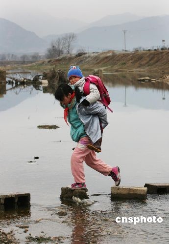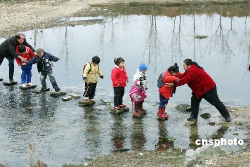 圖:300多學(xué)生每日踩石頭過河上學(xué)(2)——中新網(wǎng)