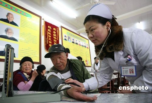 3月5日,安徽蒙城縣第一人民醫(yī)院的青年志愿者攜帶有關(guān)診療器械,來(lái)到縣民政局光榮敬老院義務(wù)為這里的老人們測(cè)量血壓、檢查身體,并接受老年健康咨詢,以實(shí)際行動(dòng)傳承雷鋒精神。中新社發(fā) 胡衛(wèi)國(guó) 攝