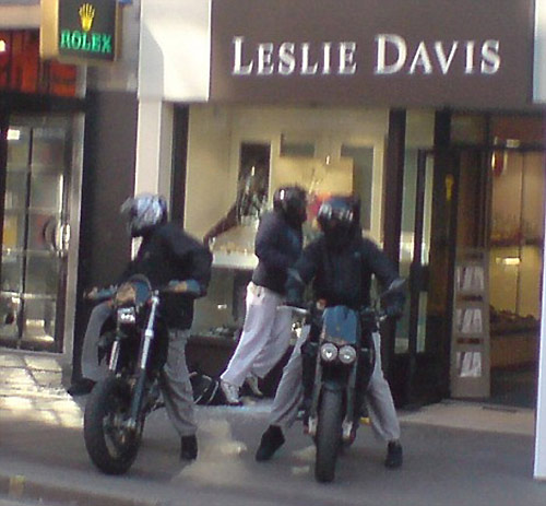中新網(wǎng)3月8日電 據(jù)英國媒體報道,6日,一群摩托黨在倫敦最繁華的大街上搶劫了一家珠寶店。這已經(jīng)是該團(tuán)伙第二次做案。實施搶劫的有4人,都戴著頭盔以隱藏面部,目擊者表示他們看上去不過是學(xué)生年紀(jì)。搶劫時,其中兩人沖進(jìn)店里,用大錘砸碎櫥窗玻璃,拿走里面的手表和珠寶;另外兩人則一直開著引擎,等前者跳上車后即迅速離開。