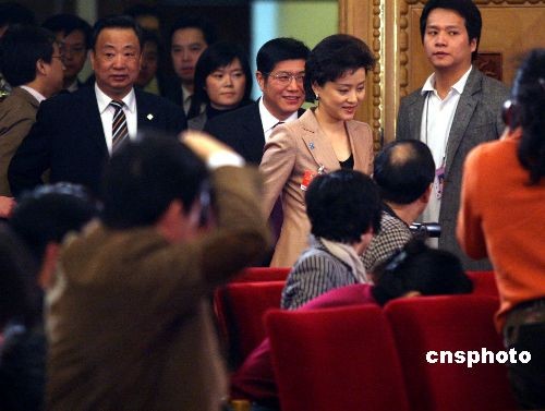 全國(guó)政協(xié)委員楊瀾3月8日參加全國(guó)政協(xié)十一屆二次會(huì)議記者會(huì),一些男記者提問(wèn)時(shí)首先祝賀她“節(jié)日快樂(lè)”,楊瀾含蓄答謝。中新社發(fā) 宋吉河 攝