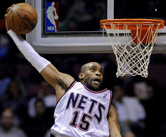 圖為籃網(wǎng)球星卡特在比賽中扣籃。
