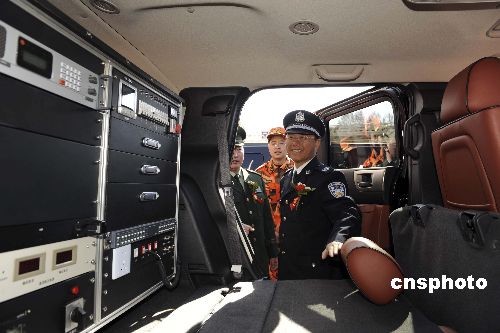 3月10日,西藏自治區(qū)副主席、自治區(qū)公安廳黨委書記、廳長(zhǎng)李昭視察拉薩消防特種裝備車輛。當(dāng)日,西藏公安消防部隊(duì)特種裝備車輛服役儀式在拉薩舉行。中新社發(fā) 廖攀 攝