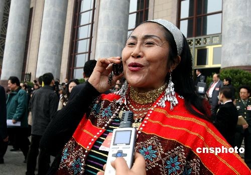 圖:政協(xié)閉幕 佤族委員和家人通電話——中新網(wǎng)