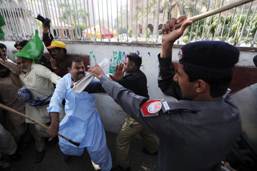 3月15日,巴基斯坦前總理謝里夫的支持者在拉合爾舉行抗議集會時與警察發(fā)生沖突。