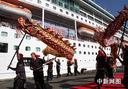三月十六日上午八時二十分許,“安利心印寶島萬人行”首航郵輪“海洋神話號”載著一千六百名安利中國大陸首發(fā)人員緩緩駛進(jìn)臺灣基隆港。這是兩岸基本實現(xiàn)“三通”以來第一個抵臺的郵輪直航團。中新社記者 陳立宇 攝