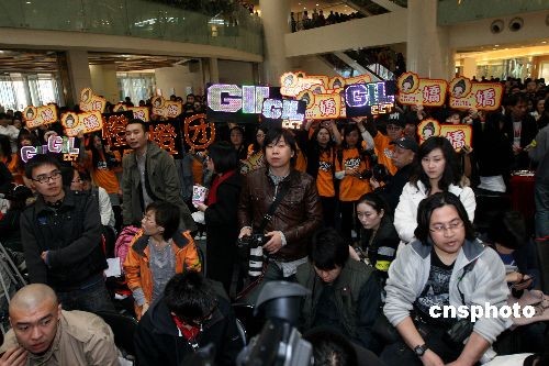 2009年3月21日,香港歌星阿嬌在北京西單大悅城為其代言的牛仔品牌做最后一站巡回宣傳。阿嬌在活動(dòng)中表示很遺憾沒能到北京看奧運(yùn)會(huì),但這次接下復(fù)出后第一份工作并在北京看到支持的歌迷讓她感受到了生活的快樂和堅(jiān)強(qiáng)的意義。中新社發(fā) 袁方 攝
