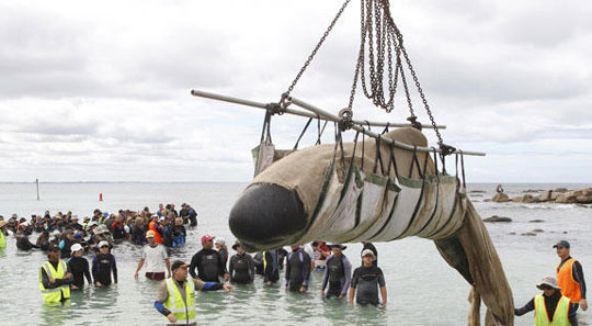 圖:澳大利亞志愿者營救擱淺的鯨魚和海豚(3)——中新網(wǎng)