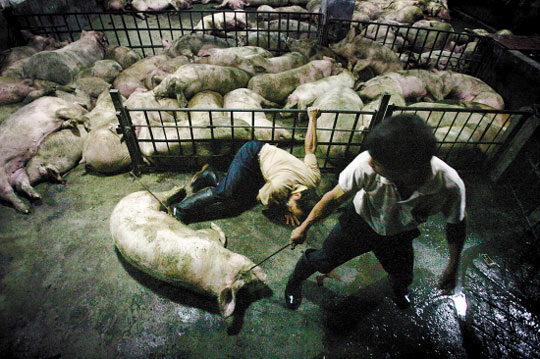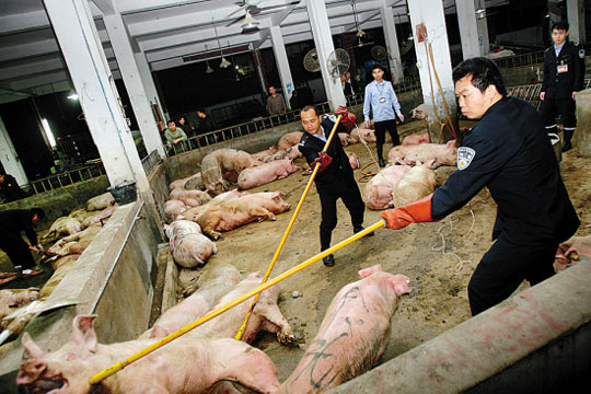 25日,天河區(qū)動(dòng)防所透露,在天河牲畜交易市場(chǎng)來自河南新鄉(xiāng)孟津的149頭生豬中,已明確查出17頭含有“瘦肉精”。25日晚,動(dòng)檢人員用高壓電擊將這149頭生豬電死后,送上衛(wèi)生處理車,運(yùn)往廣州市衛(wèi)生處理廠作無公害處理。而天河牲畜市場(chǎng)43戶檔主,已集體寫好“不要關(guān)閉市場(chǎng)”的訴求書,擇日遞交到政府有關(guān)部門。