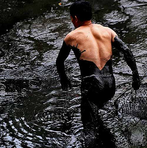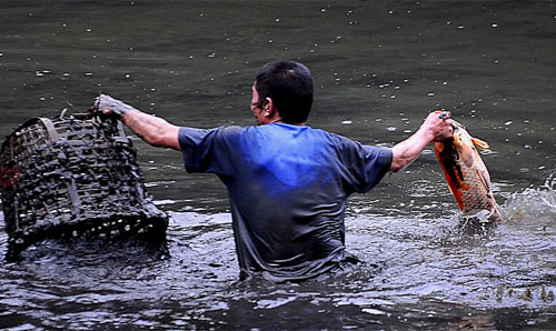 據(jù)華農(nóng)某施工隊(duì)的鄭師傅說(shuō),學(xué)校為了迎接校慶,計(jì)劃縮小池塘面積,并重新規(guī)劃周邊區(qū)域。約一周前就開(kāi)始不分晝夜抽水,至昨日滿塘水被抽到塘底。昨日中午就開(kāi)始有人下水捉魚(yú),大頭魚(yú)、鯉魚(yú)、鯰魚(yú)……品種很多,每條最少五六斤,幾個(gè)小時(shí)內(nèi)已撈起近千斤魚(yú)。昨日下午3時(shí)許,曾有校衛(wèi)過(guò)來(lái)驅(qū)趕捕魚(yú)者。但校衛(wèi)一走,眾人又一窩蜂下水,之后再無(wú)人來(lái)干涉。