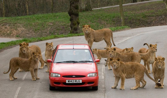 據(jù)英國(guó)媒體報(bào)道,游客駕駛著汽車(chē)在英國(guó)一家野生動(dòng)物園觀光時(shí)被10多頭獅子圍困,司機(jī)把車(chē)門(mén)和窗戶緊緊關(guān)閉,以防動(dòng)物襲擊。此時(shí),司機(jī)的表情還能否如觀光時(shí)一樣愉悅就不好說(shuō)了。