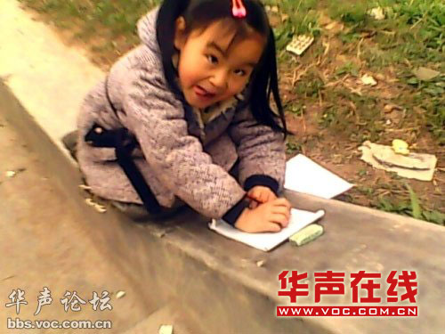 “盡管是初春,但若有若無的雨絲,也讓人忍不住要裹緊衣服。女孩一直在專心地做著作業(yè),并沒有因?yàn)樘葑由厦嬗腥俗呦聛矶艿接绊。”發(fā)帖人稱自己在一個小區(qū)工地發(fā)現(xiàn)這名小女孩并和她攀談起來:“我問她為什么不回家,偏偏跑到有雨的外面做作業(yè)?她調(diào)皮地朝我做了一個鬼動作,‘我媽媽叫我在這里做作業(yè)。”