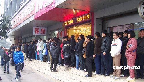 元旦剛過,浙江杭州火車站武林路售票處的買票隊(duì)伍已經(jīng)排到了售票大廳外。1月的杭州雖然寒風(fēng)瑟瑟,但是歸家心切的市民依然秩序井然。中新社發(fā) 趙曄嬌 攝