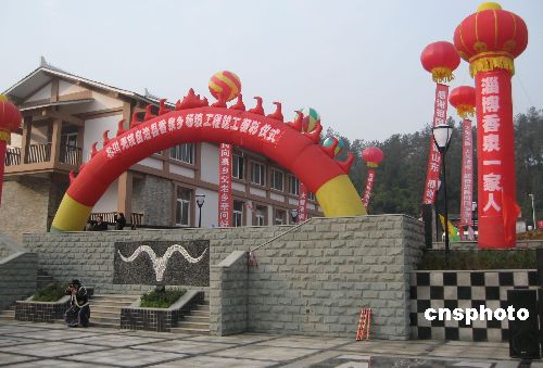 一月八日,四川地震災(zāi)區(qū)首個(gè)異地重建鄉(xiāng)鎮(zhèn)——北川羌族自治縣香泉鄉(xiāng)舉行竣工儀式!拔濉ひ欢碧卮蟮卣鹬,北川陳家壩鄉(xiāng)、漩坪鄉(xiāng)和香泉鄉(xiāng)原場(chǎng)鎮(zhèn)遭受?chē)?yán)重破壞,后又遭遇“九·二四”洪澇泥石流災(zāi)害。經(jīng)四川省政府批準(zhǔn),三個(gè)鄉(xiāng)進(jìn)行原地異址重建。中新社發(fā) 肖青 攝