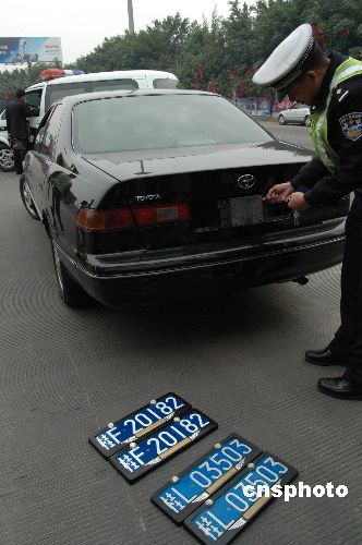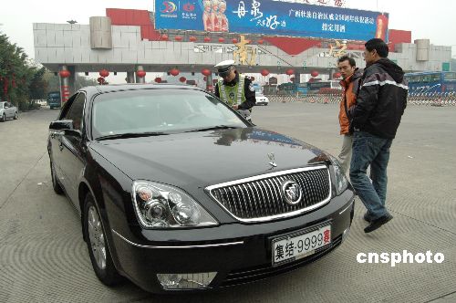 1月11日,當日是中國春運首日,廣西派出大量警力上路執(zhí)勤,查獲不少假牌套牌車輛。中新社發(fā) 王剛 攝
