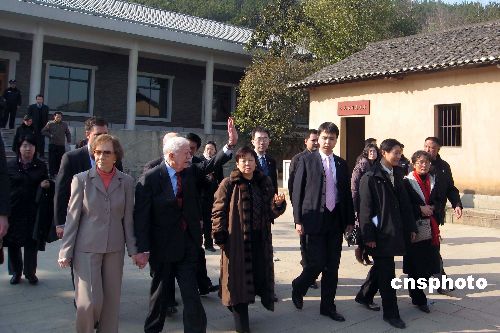 一月十四日,美國前總統(tǒng)吉米·卡特夫婦一行七人抵達(dá)武漢,并赴前中國國家主席李先念的故鄉(xiāng)湖北紅安縣參觀訪問。中國對(duì)外友協(xié)副會(huì)長李小林、湖北省副省長田承忠等陪同參訪。中新社發(fā) 艾啟平 攝