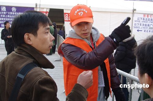 1月15日,為從容應(yīng)對(duì)上海站春運(yùn)大客流到來(lái),上海鐵路局團(tuán)委加強(qiáng)路地聯(lián)合,從全局及地方院校招募千余名青年志愿者,經(jīng)動(dòng)員培訓(xùn)后迅速上崗,為旅客提供咨詢等服務(wù)。中新社發(fā) 陸應(yīng)果 攝