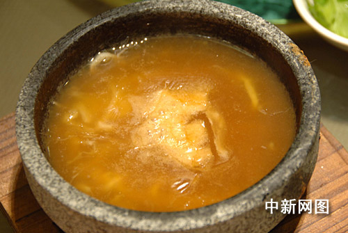 這道用魚翅、高湯焗制出來的菜肴,這道菜用料高檔,味香汁濃,營養(yǎng)豐富,極具食相,吃后齒頰留香,是該菜館的招牌菜式之一。