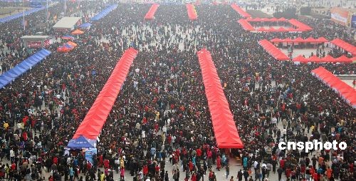 2月6日,“2009年河北省畢業(yè)生就業(yè)市場(chǎng)”在石家莊市東開(kāi)發(fā)區(qū)火炬廣場(chǎng)舉行。這是河北省今年首場(chǎng)、也是全年規(guī)模最大的一次畢業(yè)生就業(yè)活動(dòng),招聘大會(huì)有1362家單位報(bào)名,提供近3萬(wàn)個(gè)工作崗位,招聘單位和崗位數(shù)量均創(chuàng)該省歷史新高,預(yù)計(jì)將有10萬(wàn)名求職者爭(zhēng)搶“飯碗”。