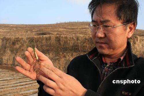 甘肅推廣小麥膜側(cè)種植技術(shù)抗旱保墑效果明顯。2月6日,農(nóng)業(yè)專家在甘肅省靜寧縣甘溝鄉(xiāng)測試冬小麥土壤濕度,這里實行了膜側(cè)種植、全膜覆蓋種植,既集雨,又保墑。多日來,實地測試結(jié)果顯示,實施這一技術(shù)的土壤墑情明顯好于普通露地。中新社發(fā) 殷春永 攝