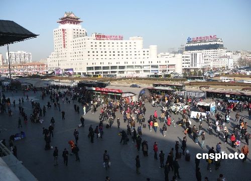 2009年2月11日,北京西站廣場(chǎng)旅客如織,再次迎來(lái)春運(yùn)客流高峰。據(jù)悉,此次客流高峰的旅客主要是返城民工及返校學(xué)生。 中新社發(fā) 玉龍 攝
