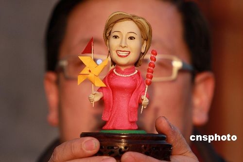 2月20日,中國(guó)非物質(zhì)文化遺產(chǎn)項(xiàng)目傳承人“面人彭”彭小平展示他精心制作的面人新作品--美國(guó)國(guó)務(wù)卿希拉里。當(dāng)日,美國(guó)新任國(guó)務(wù)卿希拉里結(jié)束訪韓行程,開(kāi)始她亞洲四國(guó)之行的最后一站--中國(guó)。此次亞洲之行是希拉里出任奧巴馬政府國(guó)務(wù)卿以來(lái)首次外交出訪,希拉里的訪華受到北京市民的關(guān)注。中新社發(fā) 鄭雄增 攝