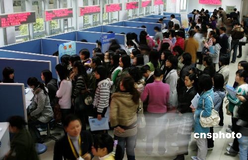 二月二十八日,福州舉辦“女性就業(yè)專場(chǎng)”招聘會(huì),不料竟有許多男士也遠(yuǎn)道趕來(lái)“搶”女同胞的工作崗位。中新社發(fā) 楊婀娜 攝