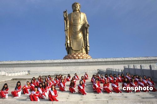 3月6日上午,來自河南各地的60名2009國(guó)際旅游小姐參賽選手匯集在河南魯山縣,在天瑞大佛前祈福求“和”,祈福中國(guó)建國(guó)60周年,祈福世界和平、社會(huì)和諧。中新社發(fā) 王中舉 攝