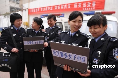 3月24日,鄭州市公安局金水分局花園路派出所結(jié)合轄區(qū)實(shí)際,以及青年女民警溫和細(xì)膩親和力強(qiáng)便于開(kāi)展社區(qū)警務(wù)的特點(diǎn)和優(yōu)勢(shì),由鄭州市公安局金水分局花園路派出所11名社區(qū)女民警組成的河南公安首支“社區(qū)警務(wù)女子中隊(duì)”正式上崗。據(jù)了解,該“社區(qū)警務(wù)女子中隊(duì)”采用分片聯(lián)勤工作機(jī)制,既有各自的社區(qū)警務(wù)責(zé)任分工,又有相互合作聯(lián)勤協(xié)調(diào),優(yōu)勢(shì)互補(bǔ)。 中新社發(fā) 劉書(shū)亭 攝