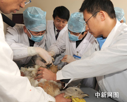 4月16日上午,河北河間市尊祖莊鄉(xiāng)前申魯村村民魏貴華救助了一只受傷的國家一級(jí)保護(hù)動(dòng)物大鴇,隨后志愿者將受傷大鴇接到河北滄州市野生動(dòng)物救護(hù)中心。經(jīng)初步檢查,發(fā)現(xiàn)大鴇右腿骨折,在骨折處上方還有一個(gè)巨大腫瘤。為盡最大努力挽救受傷大鴇的生命,17日,動(dòng)物救護(hù)中心請(qǐng)來了滄州市中西醫(yī)結(jié)合醫(yī)院李國良等3位骨科專家義務(wù)為大鴇診療。經(jīng)過近3小時(shí)的手術(shù),專家摘除了一個(gè)直徑8cm,重達(dá)200g的巨大腫瘤,并切除了壞死的斷肢。