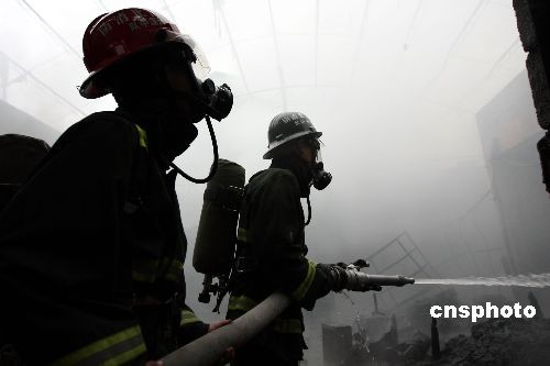 4月20日5時34分,安徽省濉溪縣虎山路東側口子批發(fā)市場附近一漁畜具倉庫發(fā)生火災。淮北市消防支隊先后調(diào)動3個中隊9輛消防水罐車、2輛消防指揮車, 80名官兵前往火場滅火。明火于早晨8時被撲滅。此次火災過火面積150平方米左右,無人員傷亡。在撲救過程中,共搶救危險品8桶桐油、6罐氧氣瓶,疏散被困人員近200人。目前火災損失和起火原因正在進一步調(diào)查中。中新社發(fā) 萬善朝 攝