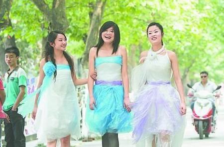 昨日中午,成都理工大學(xué)第四教學(xué)樓旁擺起了展臺,七名身著用藍(lán)、黑、白相間的塑料薄膜做成的“塑料時裝”的女學(xué)生登場,引來了陣陣掌聲。據(jù)介紹,這些學(xué)生所穿的“塑料時裝”全部采用日常生活中常見的塑料,通過他們自己獨立設(shè)計成衣服,向現(xiàn)場的觀眾宣傳環(huán)保,號召師生們盡量采用環(huán)保制品,愛護(hù)我們共同的家園。(李斌 黃海英 李啟明 孫立新)