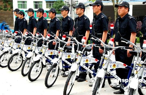 5月5日,江西婺源的大街小巷的城區(qū)出現(xiàn)了一支特警自行車治安巡邏隊。他們騎乘統(tǒng)一配發(fā)的輕便自行車,車前掛有“巡警110”標志,車后配備便民服務箱。為群防群治,共織平安網(wǎng),婺源縣公安局特警大隊由60人組成的一個特色 “警務自行車巡邏隊”,以適應該縣轄內(nèi)小街巷多、警車巡邏不易覆蓋的治安特點。同時利用自行車巡邏既環(huán)保、便捷、無噪音,又可增加古城小道的見警率,還避免了機動車頻繁流動造成的道路擁堵, 大大提高“走街串巷”治安巡防的效率,延伸了公安機關對社會面的防控觸角。 中新社發(fā) 王國紅 攝