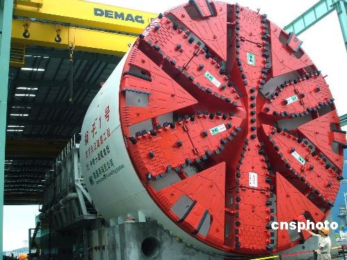 五月二十日上午,隨著“揚子二號”盾構(gòu)機的巨型刀盤轟鳴呼嘯著沖破最后一環(huán)冷凍層,中國鐵建十四局集團承建的國家“八六三”計劃科技示范工程、代表當今中國水下隧道建設(shè)最高水準之一的南京長江隧道左線順利貫通。南京長江隧道位于南京長江大橋和長江三橋之間,總長達到五千八百五十三米,設(shè)計為雙向六車道,行車時速八十公里,其中左右線盾構(gòu)隧道總長超過六千米,工程總投資近四十億元人民幣。它是迄今為止中國長江流域上工程技術(shù)難度最大、地質(zhì)條件最復(fù)雜、技術(shù)性難題和挑戰(zhàn)最多的世界級越江隧道工程。南京長江隧道施工采用了兩臺目前世界上最先進的泥水平衡盾構(gòu)機掘進,刀盤直徑為14.93米,相當于5層樓高,超過了目前世界上已經(jīng)建成的最大直徑隧道——荷蘭的格林哈特隧道。中新社發(fā) 李佩山 攝