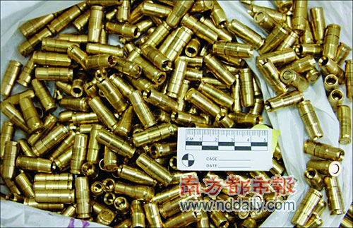 “制造子彈的四個人是五金廠的模具師,他們有制作的技術(shù),只要有圖紙,很容易就能造出來!标愖优式榻B,嫌犯還從廣西弄來黑色火藥,裝上去就可以射擊,威力很大,“只比真子彈稍微差一點而已。”