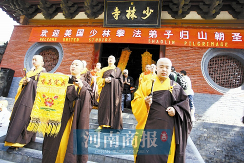 圖為少林寺用最隆重的儀式迎接“洋弟子” 王春勝 攝