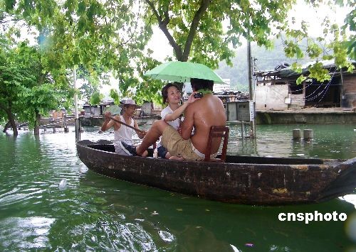 7月6日,受廣西上游普降暴雨影響,西江廣東境內(nèi)封開縣江口水位急速上漲,到下午4時(shí)止,封開縣城江口水位達(dá)到19.32米,超出警戒線2.2米,西江水已淹入江口鎮(zhèn)部分地區(qū),并仍以6厘米/小時(shí)的速度上漲,肇慶高要水文站稱,預(yù)計(jì)7日傍晚將迎來(lái)今年西江首個(gè)洪峰,西江水位將超過9米。目前西江肇慶段沿線正嚴(yán)陣以待備戰(zhàn)洪災(zāi)。中新社發(fā) 黃耀輝 攝
