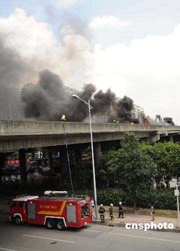 7月12日9時(shí)50時(shí)許,廣州市環(huán)城高速東圃路段,兩車相撞燃燒。車子燃燒的火苗有3米多高,該市環(huán)城高速東圃路段同方向車輛被堵近5公里長(zhǎng)。據(jù)高速橋下一位洗車師傅說,兩車是同相行駛,相撞時(shí)間大概是凌晨3點(diǎn)左右,先是一輛貨車燒著了,到上午9時(shí)許,另一車接著燃燒。10時(shí)59分,消防車趕到事發(fā)現(xiàn)場(chǎng)展開援救。截止發(fā)稿時(shí)間,大火已被撲滅,人員傷亡情況正在調(diào)查中。中新社發(fā) 陸建東 攝