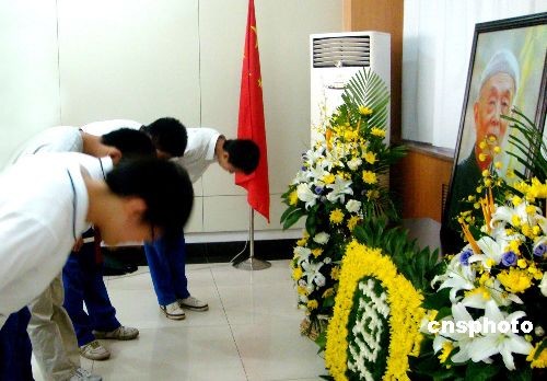 七月十四日上午,季羨林先生的母校山東省濟(jì)南第一中學(xué)(前身為濟(jì)南正誼中學(xué)、省立高中)舉行了悼念哀思儀式,師生們一起緬懷大師生前對(duì)母校的嘉言懿行。二零零一年十月,山東大學(xué)百年校慶,季羨林先生應(yīng)邀出席校慶系列活動(dòng)。當(dāng)時(shí),已是九十高齡的季羨林先生說,無論如何我要回母校濟(jì)南一中看一看。在這最后一次回母校中,季羨林先生與校友歐陽中石、董鳳基共同捐資五十萬元人民幣,設(shè)立了“春暉獎(jiǎng)學(xué)金”,以褒獎(jiǎng)學(xué)習(xí)成績優(yōu)異的學(xué)生。中新社發(fā) 牛杰峰 攝