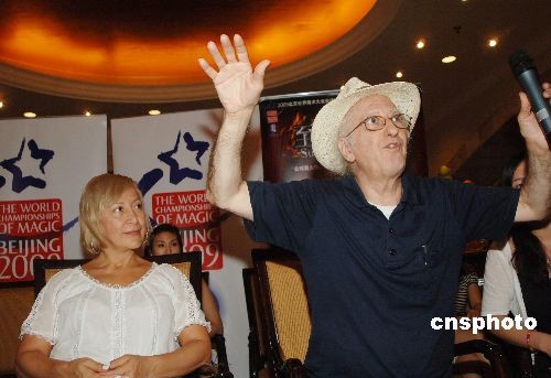 7月20日,2009北京世界魔術(shù)大會召開發(fā)布會,宣布開幕式晚會預(yù)演將于7月21日至23日在北京保利劇院拉開帷幕。9位在國內(nèi)外獲得金獎的魔術(shù)師將亮相本次晚會,獲得中國雜技“金菊獎”金獎的農(nóng)民魔術(shù)師汪奇魔、“金菊獎”全國魔術(shù)比賽金獎獲得者傅琰東、曾獲“寶豐杯”全國魔術(shù)金獎的戚原睿、首次展示“水里變魔術(shù)”的鄔鵬程將同臺表演。圖為將于本次大會獻藝的西班牙著名魔術(shù)師胡安(右)暢談“魔幻奧秘”。中新社發(fā) 李學(xué)仕 攝
