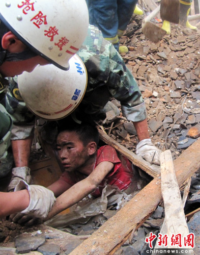 不一會(huì)兒,第3組人員發(fā)現(xiàn)在廢墟右側(cè)靠里面的地方有微小的聲音,“又找到一名被困婦女”,在場(chǎng)人員又一次緊張起來。得知這一情況后,陸向前立即下令,3組人員同時(shí)開展救援,爭(zhēng)取在最短的時(shí)間內(nèi)搶救出被困人員。