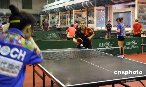 近日,多國運動員陸續(xù)抵達被譽為中國乒乓球“福地”的河北正定國家乒乓球訓練基地,參加“2009國際乒乓球訓練營”集訓。訓練營吸引了來自印度、尼日利亞國家隊,瑞典、美國、法國、加拿大國家青年隊,歐洲聯(lián)隊以及薩爾瓦多、巴拉圭、古巴、以色列、波蘭、意大利等國家的青少年運動員,還有來自中國香港的小隊員共計200多名。訓練營將于8月中旬結(jié)束,屆時將有部分國家的選手轉(zhuǎn)赴天津參加中國乒乓球公開賽。圖為加拿大國家隊的女球手在“夏練三伏”。中新社發(fā) 翟羽佳 攝
