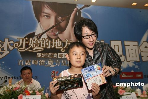 7月13日,“魔術(shù)達(dá)人”劉謙深情擁抱高價(jià)拍得自己演出門(mén)票的兒童。當(dāng)日,劉謙在鄭州參加2009年河南“希望工程圓夢(mèng)行動(dòng)”,拍賣自己的演出門(mén)票,當(dāng)天所得款項(xiàng)將捐獻(xiàn)給“最美鄉(xiāng)村女校長(zhǎng)李靈”所在的希望小學(xué)。 中新社發(fā) 王中舉 攝