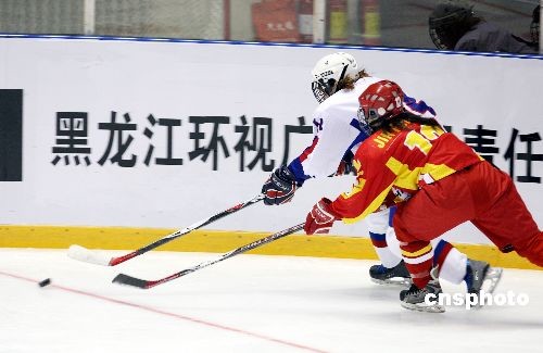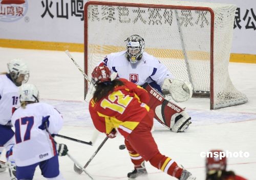 2月18日,第24屆國際大學(xué)生冬季運(yùn)動(dòng)會(huì)在哈爾濱冰球館拉開戰(zhàn)幕。當(dāng)日大冬會(huì)女子冰球比賽將在哈爾濱冰球館進(jìn)行3場比賽,首場斯洛伐克隊(duì)(白)對(duì)中國隊(duì)(紅),比賽進(jìn)行到10時(shí)20分中國隊(duì)進(jìn)首球。中新社發(fā) 姚庭山 攝