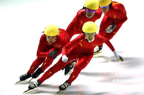 2月20日,大冬會短道速滑比賽在哈爾濱理工大學(xué)滑冰館繼續(xù)進行。在女子500米的比賽中,中國選手表現(xiàn)神勇,包攬了該項比賽的前四名。其中劉秋宏(前)以44秒862的成績問鼎冠軍,為中國隊在本屆大冬會上奪得第二枚金牌。李文文和孟曉雪分獲銀牌與銅牌,成績?yōu)?4秒929和45秒084。中新社發(fā) 富田 攝