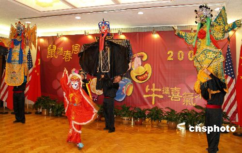 1月16日,中國駐洛杉磯總領(lǐng)館舉行“2009華僑華人新春招待會”,中領(lǐng)館多功能大廳大紅燈籠高高掛,充滿濃濃的過年味。總領(lǐng)事張云率全體領(lǐng)事與600多位華人華僑代表歡聚一堂,共慶牛年的到來。中新社發(fā) 盧威 攝