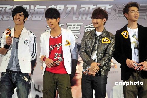 二月二十六日,臺(tái)灣組合“飛輪海”在香港一商場舉行簽名活動(dòng),為其即將舉行的演唱會(huì)造勢(shì)。中新社發(fā) 譚達(dá)明 攝