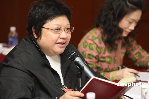 3月4日,全國政協(xié)十一屆二次會議進行分組討論。韓紅在青聯界小組討論上發(fā)言。中新社發(fā) 傅丹丹 攝