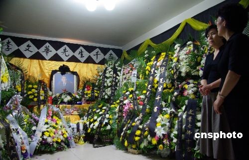 2009年5月11日,社會(huì)各界紛紛來到已故相聲藝術(shù)家李文華家中吊唁,表達(dá)對(duì)李文華先生德藝雙馨的崇敬之情。5月9日凌晨1點(diǎn)39分,著名相聲表演藝術(shù)家李文華因喉癌導(dǎo)致慢性肺源性心臟病醫(yī)治無效在朝陽醫(yī)院與世長(zhǎng)辭,享年82歲。李文華的長(zhǎng)子透露,李文華的遺體告別儀式將于本月15日在八寶山革命公墓禮堂舉行。中新社發(fā) 九州 攝