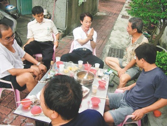 中新網(wǎng)6月29日電 據(jù)臺灣《聯(lián)合報》報道,中國國民黨大臺南市長參選人郭添財日前深入臺南市南區(qū),走訪21名國民黨籍里長。郭添財與里長伯、民眾一起在庭院用餐、聊天、聽取建議,展現(xiàn)草根性與親和力。