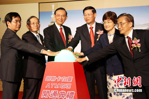 中新網(wǎng)臺(tái)北6月30日電(記者 黃少華)6月30日,中國(guó)銀聯(lián)、臺(tái)灣財(cái)金公司、臺(tái)灣銀行公會(huì)舉行記者會(huì),宣布銀聯(lián)卡在臺(tái)ATM提領(lǐng)新臺(tái)幣、預(yù)借現(xiàn)金及余額查詢(xún)服務(wù)正式開(kāi)通。